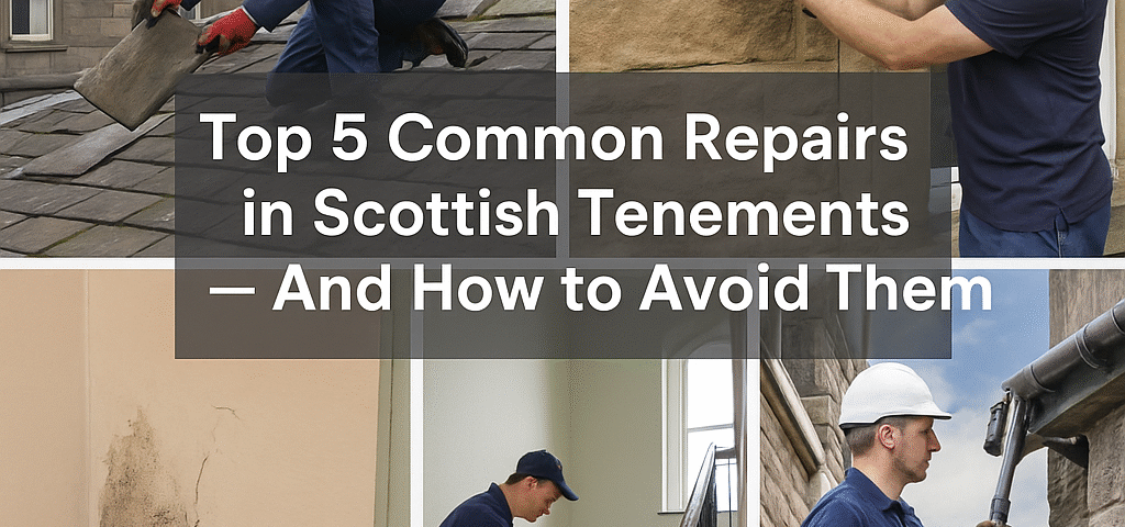 Here are the top five repairs we see most often in Scottish tenements — and how you can avoid costly fixes with the right preventative measures.